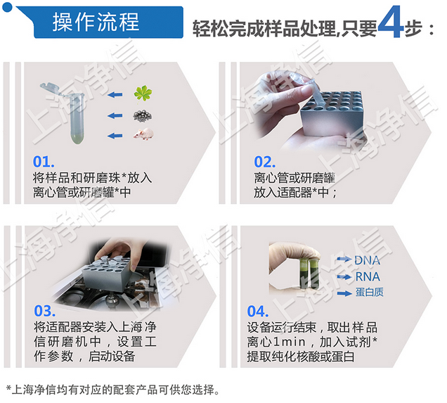 上海凈信®的Tissuelyser®組織研磨儀是一種特殊的、快速的、高效率的、多試管的一致系統。它能將任何來源(包括土壤、植物和動物的組織/器官、細菌、酵母、真菌、孢子、古生物標本等)的原始DNA、RNA和蛋白質進行提取和純化。